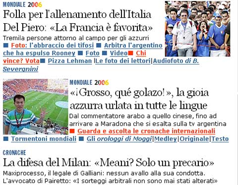 在周日那场重中之重的比赛开始之前,再没有比欣赏用几乎世界上全部重要语言来解说的多特蒙德一役最后精彩画面更好的享受了。格罗索和德尔-皮耶罗的进球场面,被西班牙语、中文、英语、葡萄牙语、阿拉伯语甚至德语解说。显然,作为“主场”解说的德国人是唯一没有在蓝衣军团的进球面前失去冷静态度的。除了他们之外,胜利的喜悦——如同里皮所说的那样,通过电视传遍了世界。
